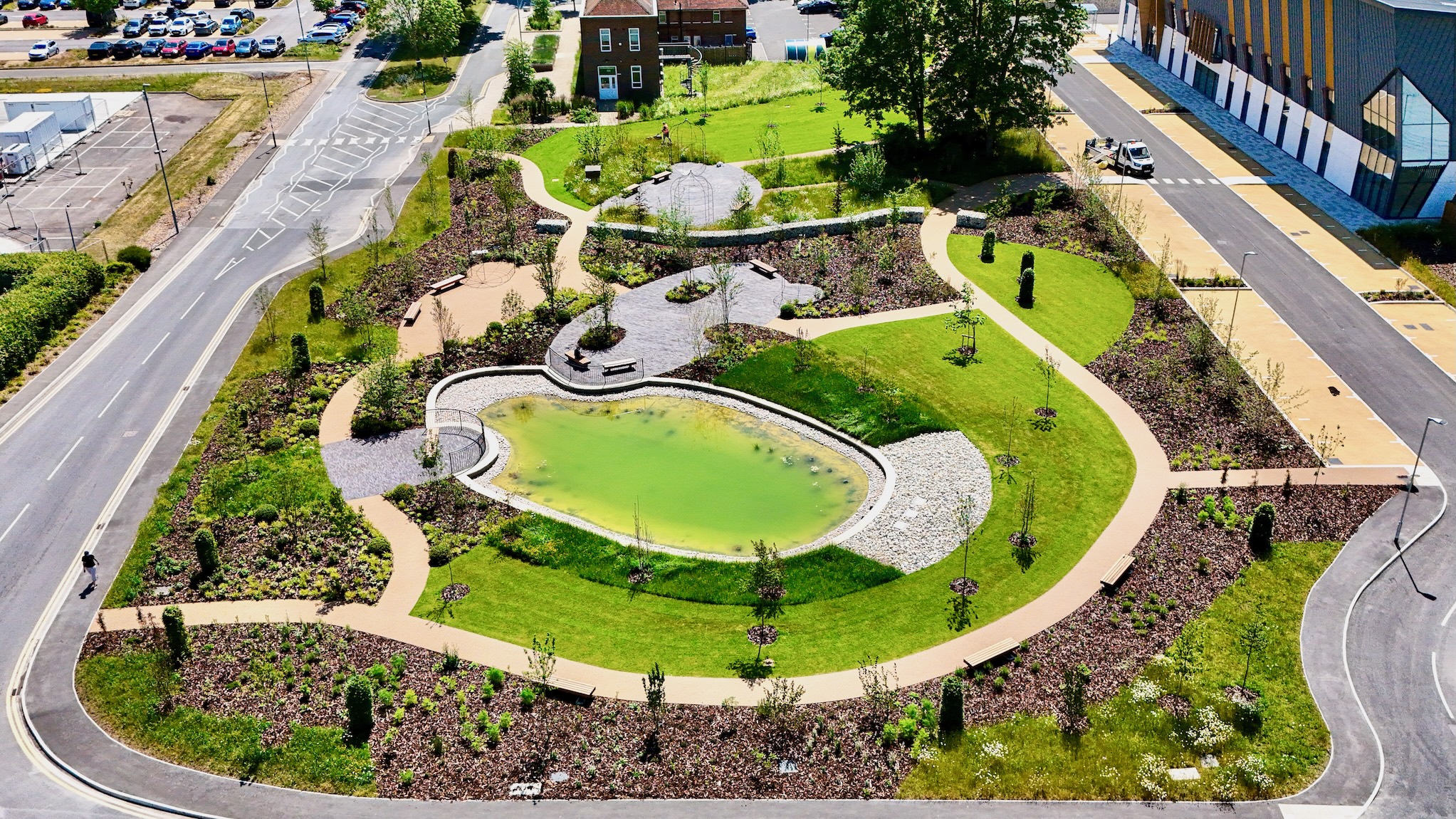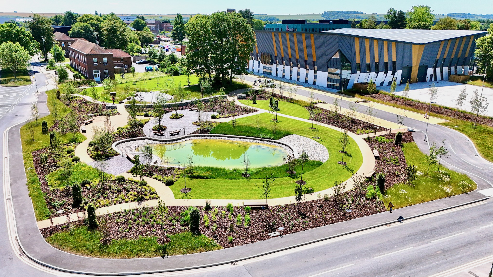 Delivered safely, on budget and without disruption, the pocket park is the centrepiece of Harwell’s placemaking strategy, enhancing occupier well-being, biodiversity and the campus’s appeal to ‘bright minds’ – leading scientists and the innovators who employ them.